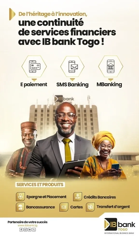 Appuyée par son expertise, son solide réseau international et son engagement à promouvoir le progrès économique, IB bank Togo occupe une place centrale dans l'économie nationale. Avec une vision de croissance inclusive, la banque accompagne ses clients vers un avenir prospère, tout en créant des opportunités pour l'ensemble du tissu économique togolais.